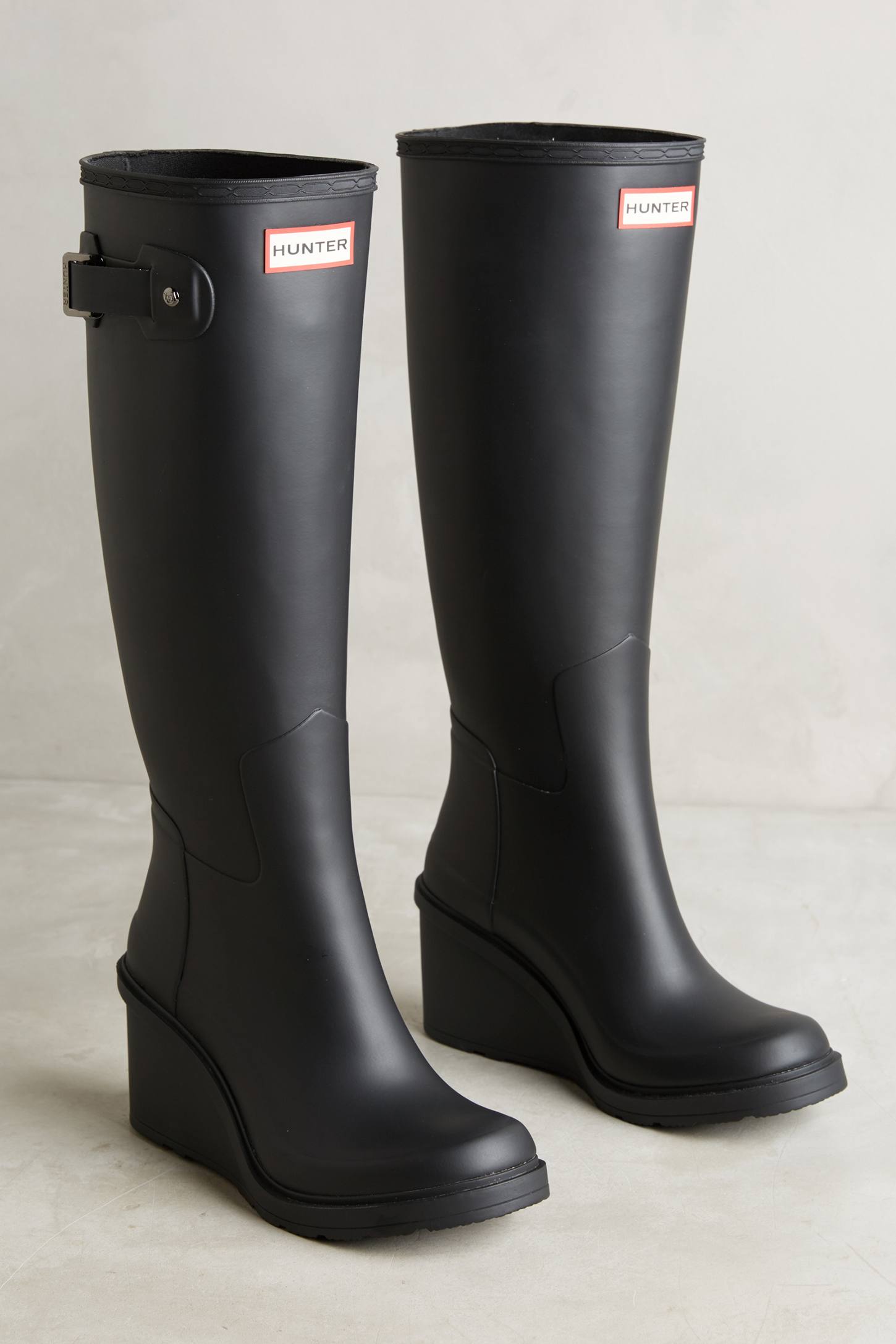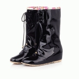 Wedge Rain boots are mostly made of waterproof rubber. They are most appropriate if working outdoors, such as on a wet commercial fishing rig, on a rainy day, or if your hobbies include gardening, or walking the cold shoreline for shells. Easy to clean by simply wiping with a soft cloth, buy your pair today!